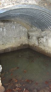 H 56: Steht direkt neben H 55, Innenraum unter Wasser, verzinktes Wellblech.