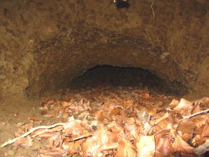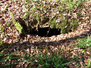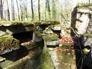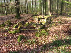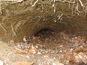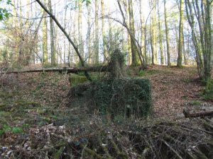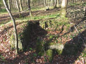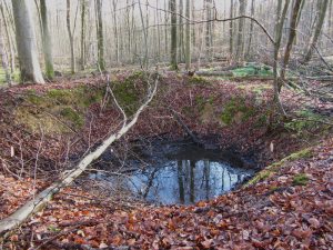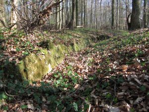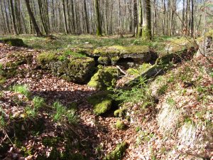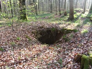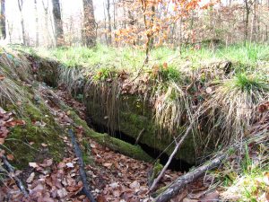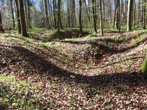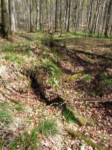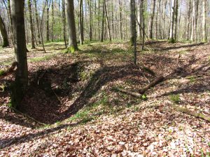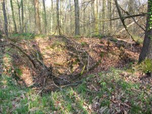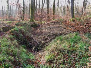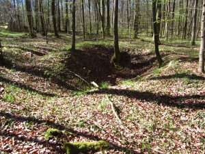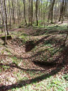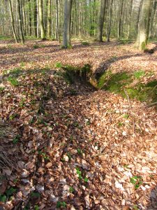 H 145: Mulden von Unterständen, Aushub ist feindwärts ringförmig aufgeschichtet.