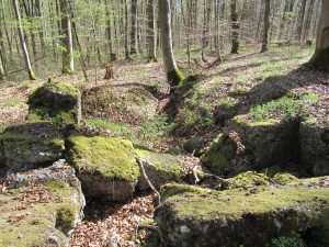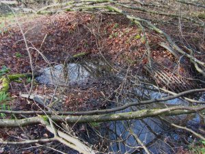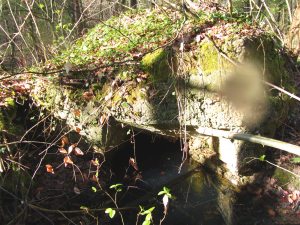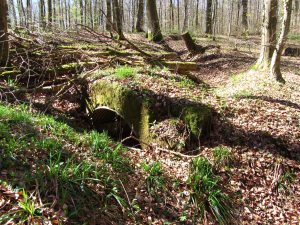 H 157: eine Rarität im Sundgau: ein betonierter Graben. Die Grabenwände sind mit einer dünnen Betonschicht überzogen.