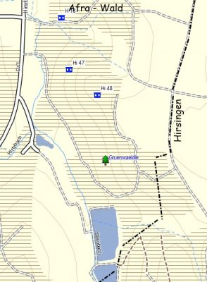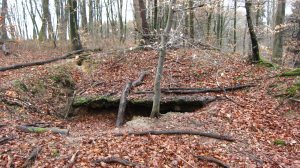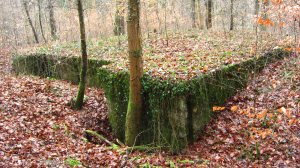 H 48: Hier ist nur noch die Betondecke zu sehen. Weitere Wellblech- oder Holzunterstände befanden sich in der Nähe.