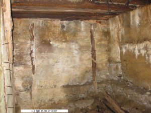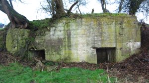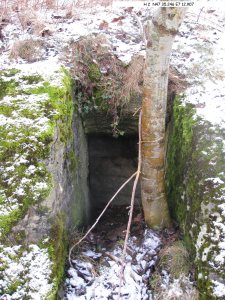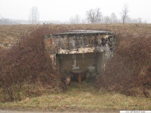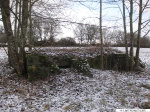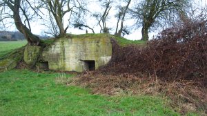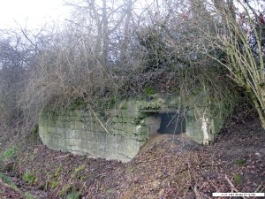 Gut getarnt hinter Hecken und Gestrüpp, auf Privatgrundstück. Wie aus der Stellungskarte ersichtlich, war dieser Unterstand Teil der Stellungen am Dorfrand.