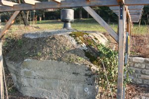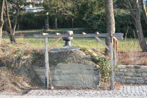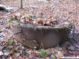 Wegpunkt: Ring, mit Beton ausgegossener Metallbehälter. Wurde benutzt um Signal- oder Meldestangen aufzustellen