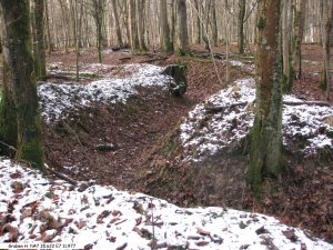 Wegepunkte: Gräben; Gut zu sehende Gräben und die Reste eines französischen Wellblech- Unterstands