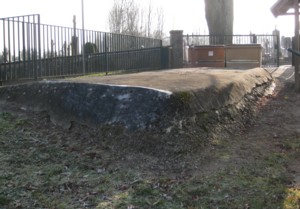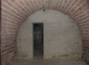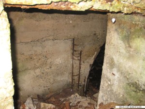 Dabei kam u.a. dieser Wellblech-Unterstand zum Vorschein. Der Unterstand war durch einen Laufgraben zugänglich. Im Innern des Unterstandes wurden bemalte Porzellanscherben (Teller, Schüssel, Blumenvasen) sowie ein Gipsei gefunden. Dass der Unterstand mit Elektrizität und/oder Telefon ausgerüstet war, belegt ein gefundener Keramikisolator.