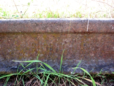 Eisenbahnschiene an der Verladerampe mit der Aufschrift: "BURBACH" gefolgt von einer unleserlichen Zahl.