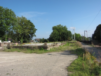 --> Beim Verladegleis am Bahnhof sind noch die Reste einer Verladerampe sichtbar.