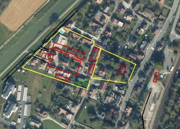 Dieses Firmengelände war für die Zwecke der Pioniere natürlich ideal. Nahe am Bahnhof gelegen und mit einer Ausladestelle an der Ill für den Schiffstransport. Durch diese Skizze war es uns möglich, den ehemaligen Standort des Parks festzustellen.