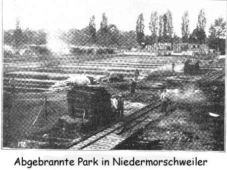 Nach einer Besichtigung des Parks durch den Chef des Stabs der Armee-Abteilung Gaede - Oberst Hesse - am 29. August 1916, wurde der Park am Nachmittag durch die Franzosen in Brand geschossen. Trotz Löschversuche mit Wasser und Sprengungen brannte der Park fast vollständig aus. Bei den Löscharbeiten wurden 4 Mann verwundet.