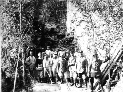 Die ganze Fläche des Steinbruchs war durch Strauchwerk gegen Sicht von oben maskiert. Bei Punkt A stand eine Werkbank, die Fläche diente auch als Lagerplatz für Baumaterial. Entlang dem Zufahrtsweg bei Punkt B befand sich eine Maskierung mit Gebüsch. Das Drahthindernis war 8-fach angelegt (2x4 Reihen). Baubeginn war im Herbst 1915.
