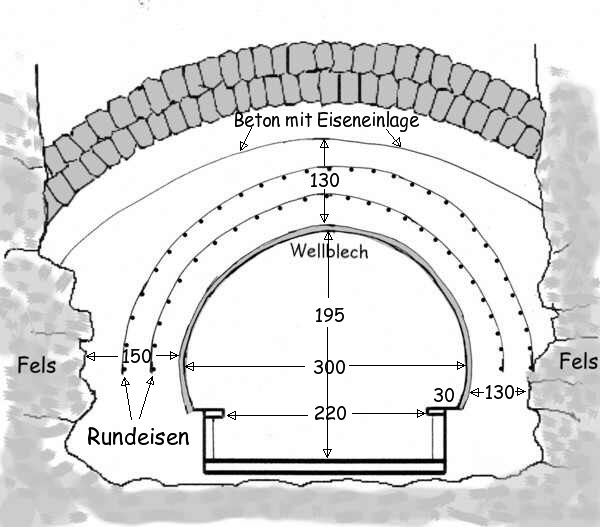 Die anderen Unterstände wurden mit einer Scheitelstärke (= Deckung) von 100 cm gebaut und später auch verstärkt.