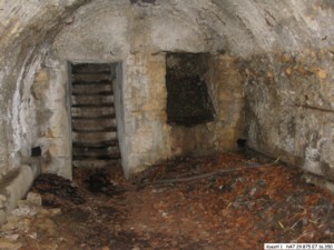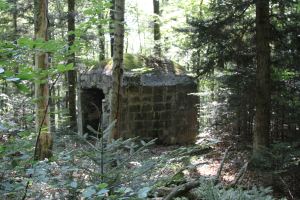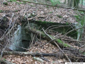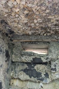 Koest 3: betonierter Unterstand mit einer Schießscharte. Die Decke wurde mit sehr grobem Schotter betoniert, welcher aus einem kleinen Steinbruch in der Nähe stammt.