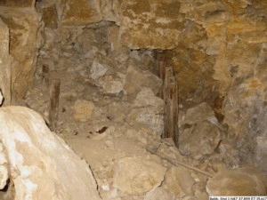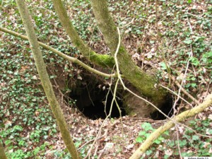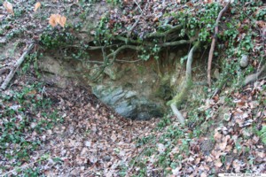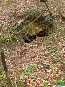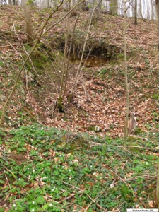 Auf dem Feldweg, der über dieser Stollenanlage verläuft, bemerkt man im Boden im Abstand von ca. 7 Meter zwei Löcher. Hier kam es wohl zum Einsturz der unterirdischen Gänge.