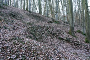 Am steil abfallenden Nord-Ost Hang des Waldstücks befand sich ein Lager. Viele Gruben/Mulden zeugen von den Standorten der Unterstände. Die Lage der Gruben stimmen jedoch nicht genau mit der Bau-Skizze überein.