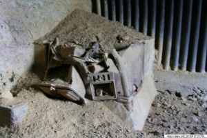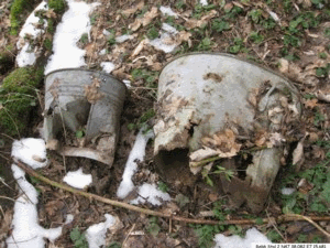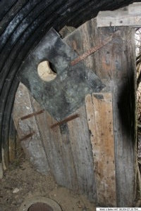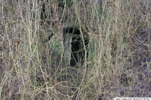 Zu erkennen sind drei Eingänge welche jedoch verschüttet sind. Wie so oft bei solchen Anlagen, finden sich in der Nähe solche verzinkte Eimer.