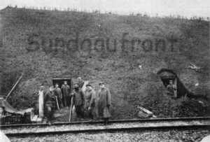 Ein einmaliges seltenes Bild: Stollenbau bei Tagolsheim durch die 4. Landwehr-Pionierkompagnie des Pionier-Bataillon Nr. 426. Das Bild wurde wohl hier bei der Stollenanlage beim Bahnhof aufgenommen: