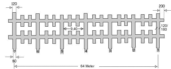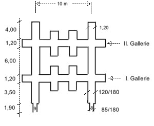 Die sechs begonnenen Stollen wurden mit einem Querschnitt von 120 x 180 cm angelegt.