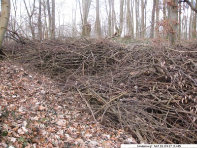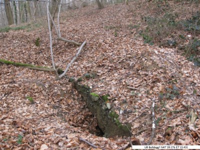 In diesem Gebiet befanden sich 6 Unterstände fuer insgesamt 104 Mann. Das Gebiet ist zerwühlt und verschüttet, nur vereinzelt schauen Betonreste hervor. Hier würde sich evtl. eine Grabung anbieten. Im Zentrum dieser Unterstände befand sich auch ein Abort.