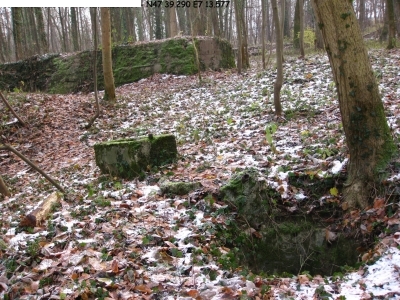 Daneben befand sich ein Brunnen mit einem Brunnentrog aus Beton.