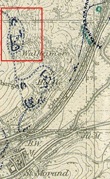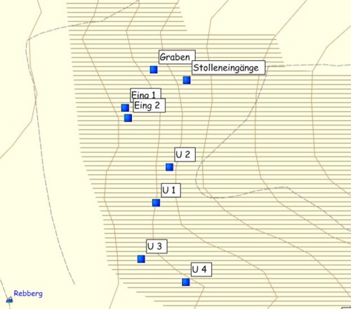 Punkt Stolleneingänge (N47 38.138 E7 15.188): Zwei noch gut erkennbare Eingänge, welche aber verschüttet sind.