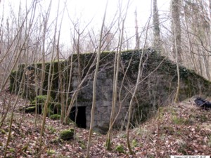 Der hintere Bau, aus Fertigsteinen errichtet, hat 2 Eingänge, 3 Räume, und ist begehbar. Die Eingänge des vorderen Baus sind verschüttet.