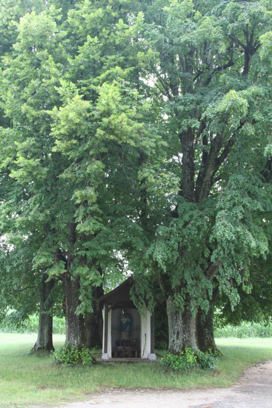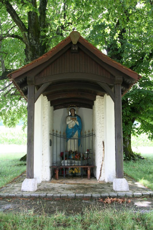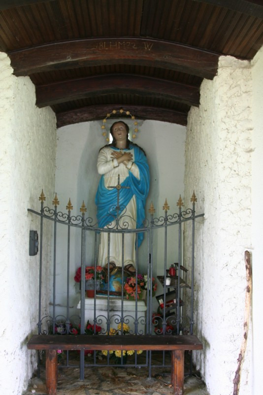 Die Marienstatue von 1746 zierte einen Brunnen im Zisterzienser Kloster Lucelle. Während der französischen Revolution wurde die Statue in Oberlarg versteckt und Anfang des 19. Jahrhunderts hier wieder aufgestellt. Ein Balken trägt die Jahreszahl 1822.